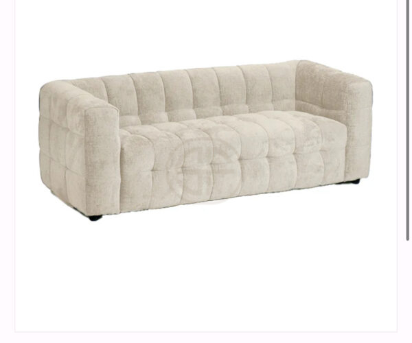 Misty Box Rectangular Sofa in a Light Tone. A seating and hosting sofa featuring high-quality upholstery and metal leg detailing. A wide, indulgent sofa with a strong presence in the space—an ideal furniture piece for large interiors.