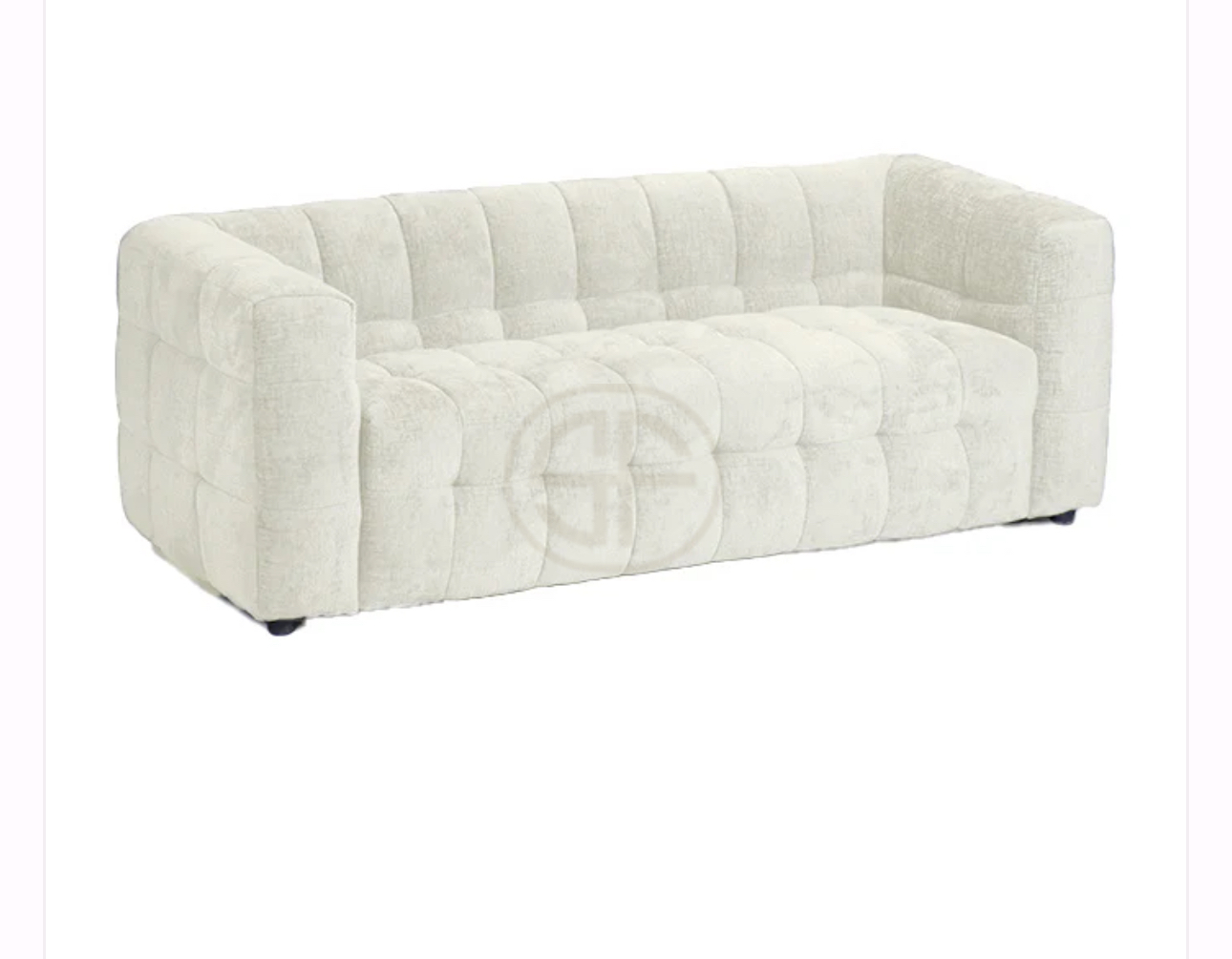 Misty Box Rectangular Sofa in a Light Tone. A seating and hosting sofa featuring high-quality upholstery and metal leg detailing. A wide, indulgent sofa with a strong presence in the space—an ideal furniture piece for large interiors.
